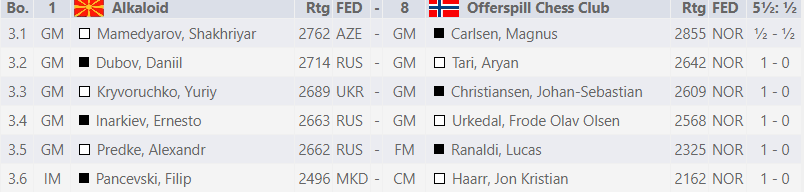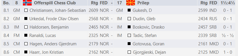 Worth to be noted is also the winner from Norway Chess Open, D Gukesh who barely won on the first board.