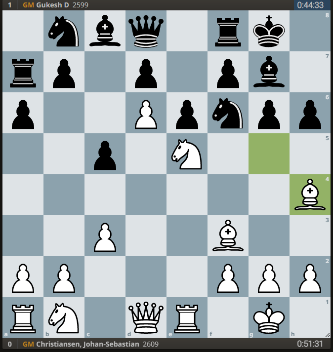 There are now 2 rounds remaining in the tournament, and we don't have any chances of a top placement. Magnus also left as he is going to play the final in the Champions Chess Tour.