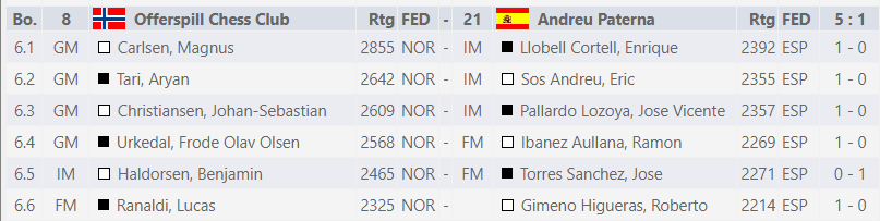 Since the Norwegian Chess Federation received 5 spots in the tournament for 2021, Offerspill was given one place on rating. We quickly decided to play as there has been so few tournaments during the pandemic, and gathered a strong, all Norwegian team, including Magnus Carlsen, Aryan Tari, Johan-Sebastian Christiansen, Frode Urkedal, Benjamin Haldorsen, Lucas Ranaldi, plus the two super reserves Anders Hagen and Jon Kristian Haarr.