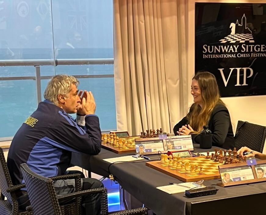 In September, I started my third semester of university. As the months went by, the days got shorter and the dark got longer. Sooner or later, we were bound to enter December and the last on-campus teaching before exams started. Since I am not in the slightest way an exam person, it felt like a stroke of genius when I discovered that I could escape the cold winter and replace it with sun and chess by the beach. Sitges, a city in Spain only an hour by bus from Barcelona, was calling my name so loud that the sounds of exams and responsibility were nowhere to be heard. When I finally arrived, the view from my room over the endless sea made me forget all about the snow that had fallen on my face in the cold morning hours. It was a dream that wouldn’t stop when I ran into fellow Offerspill member, the talented Laurin Perkampus, who told me that we both might be playing on the top boards the next day. Though the fact that Laurin has caught up with my rating feels like a nightmare, the thought of playing one of the best players in the world more than made up for it. For the next 12 hours I waited with anticipation for the first round. I must have refreshed the webpage more times than I can actually count, and when chess-results finally showed the pairings of the first of ten rounds, a smile immediately filled my face and a small sound of excitement escaped my mouth. I was going up against no other than Vassily “Chucky” Ivanchuk, ranked number two in the world several times and the man who almost destroyed Magnus’ hope of winning the 2013 Candidates Tournament - in a game where I was actually present in the playing hall. I best remember Magnus’ sitting with his bottle of orange juice that he would always bring to the game and Ivanchuk walking around spectator seats while pointing in the air as he was clearly still calculating what was happening on the board. But enough with all the talk, the next day at 4:30 pm, I sat down at the board.