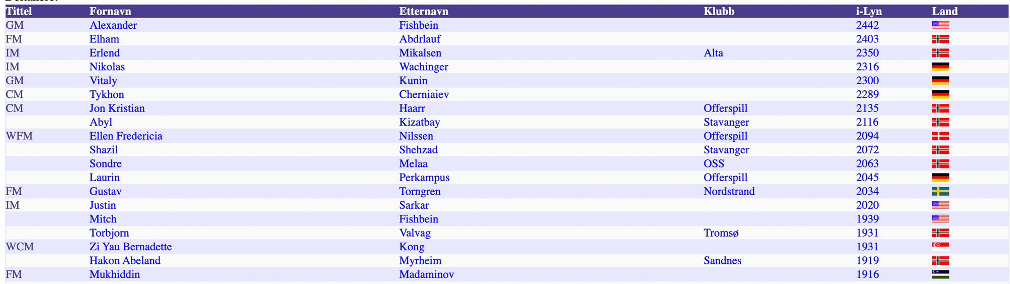 Over kan du se toppsjiktet av deltakerne i turneringen. Legg merke til FM Madaminov (2404 std) med en lynsjakk rating på 1916. Her blir det fort noen rating-offer som må betale dyrt.