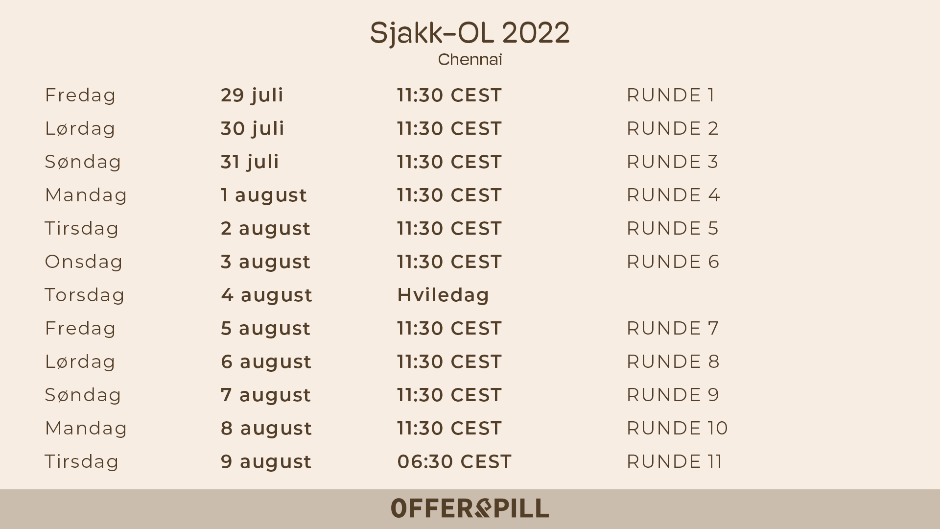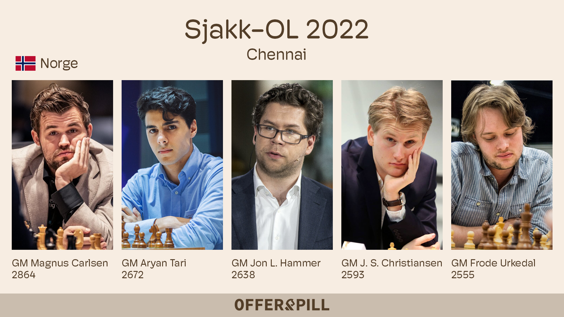 For første gang i historien er Norge seedet som nr 3 i en Olympiade. Det er høy spenning knyttet til det norske lagets sjanser til å ta en pallplass i årets Sjakk-OL og vi i Offerspill skal sende hele turneringen live på vår Twitch kanal.